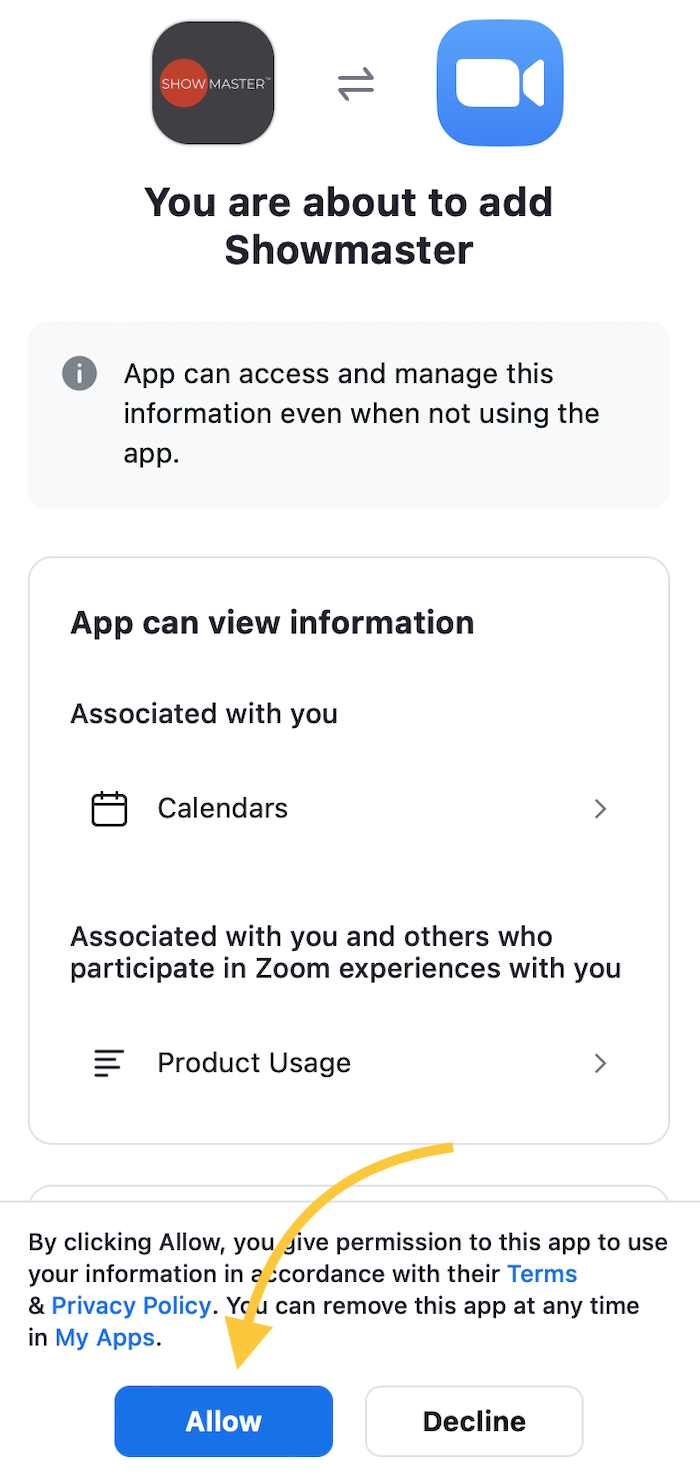 - Click Allow to authorize Showmaster.