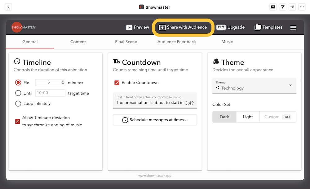 - Once you have created an impressive show, click Share with Audience.